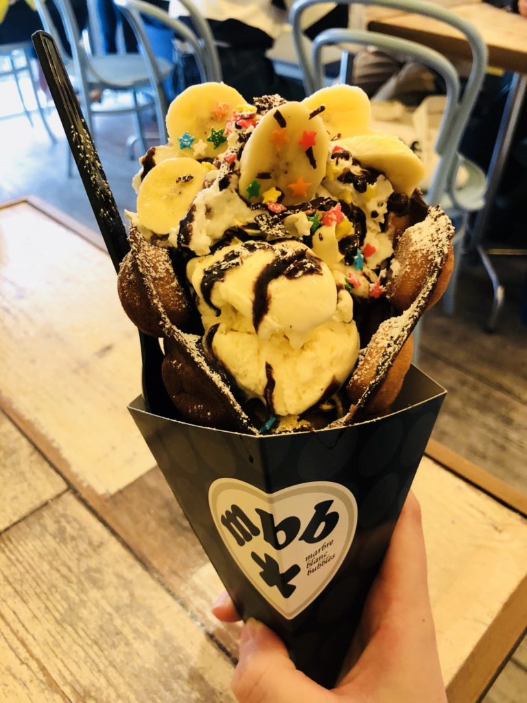 大名にあるバブルワッフル専門店です! わたしはクレープっぽいのを注文しましたが、持ち帰りもできるカップに入ったものや、パンケーキみたいなプレート物もありました😊✨ 種類や味も多くてかなり迷いました💦💦